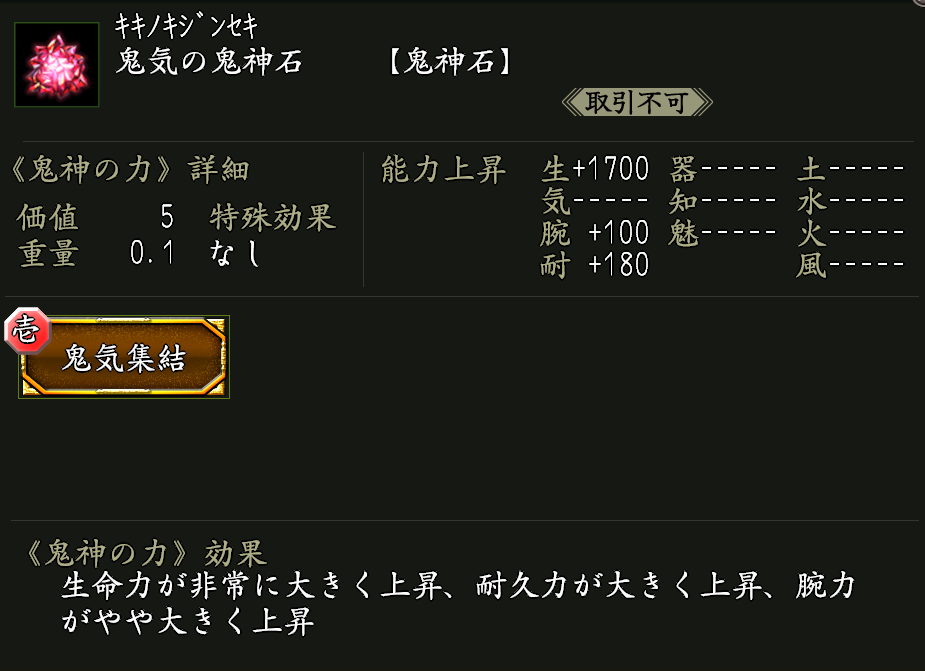 ※鬼のランクやレベルが高いほど、より多くの「鬼の士気」が下がり、多くの《鬼の財宝》を獲得できます。