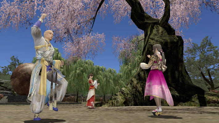 ②安土の地球儀付近にある桜の木《吹華桜》の近くで、入手した《活力の料紙》を使用することで一句詠むことができます。また、一定の確率で「祈りの踊り」が発生して、追加で「言霊評点」を獲得できます。