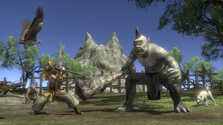 ・鬼ヶ島入り口付近に、NPC《桃太郎》と家来の犬、猿、雉が登場します。