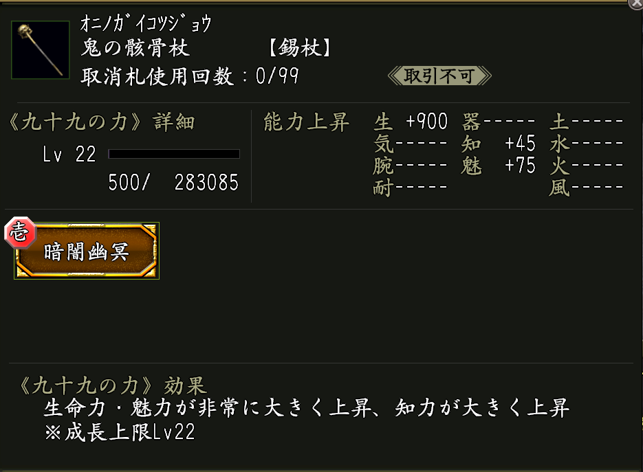 ※「暗闇幽冥」は他の九十九の力と重複扱いになりません。