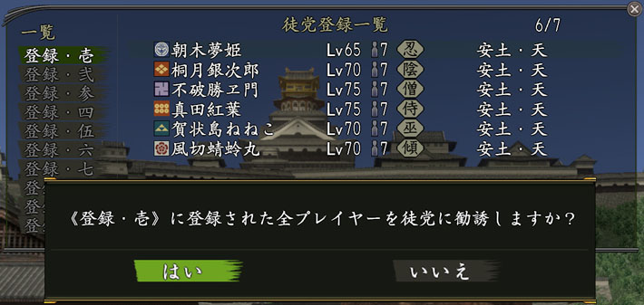 登録した徒党員を一括で勧誘できる「一括勧誘」機能の追加