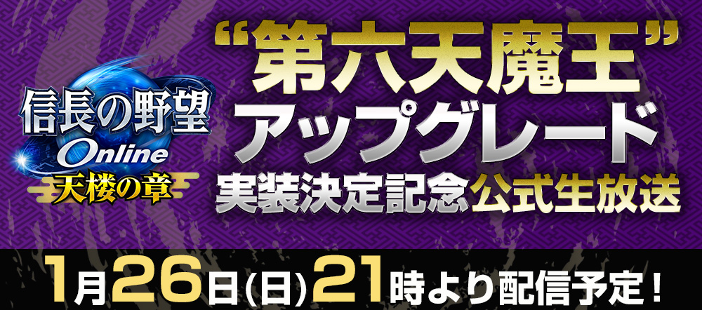 つきましては、2020年1月26日(日)21時より、インターネット生放送番組「“第六天魔王”アップグレード実装決定記念公式生放送」を配信いたします。
