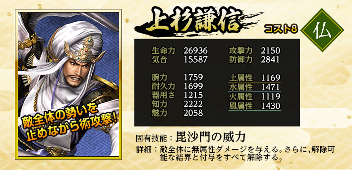 | 英傑 | 職業 | 特化系統 | 固有技能 | 固有技能説明 | |