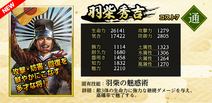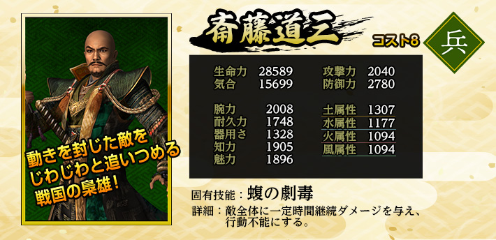 | 英傑 | 職業 | 特化系統 | 固有技能 | 固有技能説明 | |