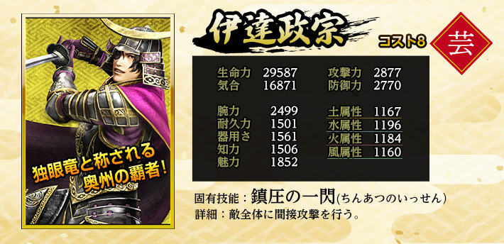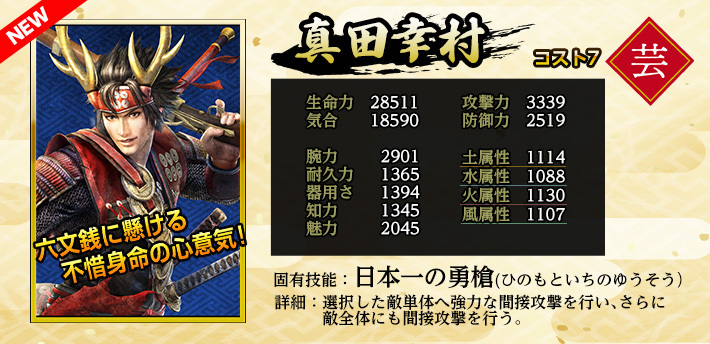 | 英傑 | 職業 | 特化系統 | 固有技能 | 固有技能説明 | |