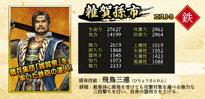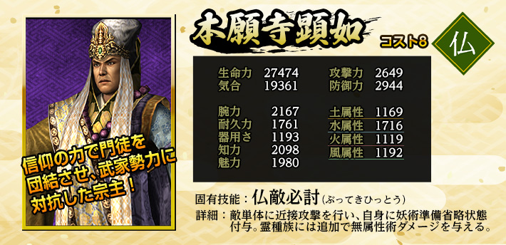 | 英傑 | 職業 | 特化系統 | 固有技能 | 固有技能説明 | |