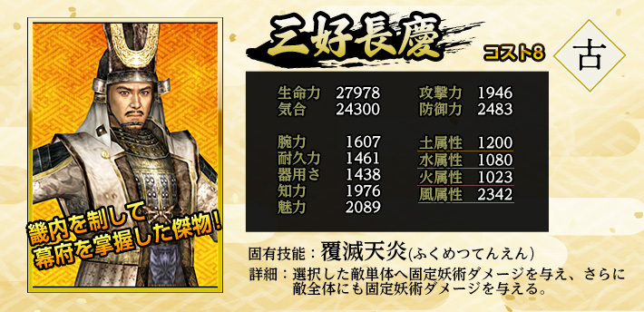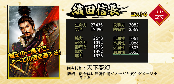 | 英傑 | 職業 | 特化系統 | 固有技能 | 固有技能説明 | |