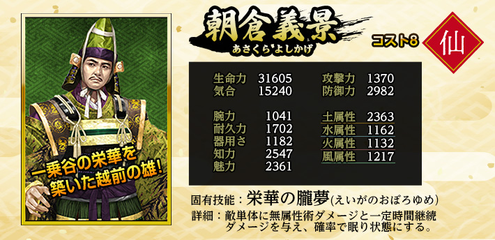 | 英傑 | 職業 | 特化系統 | 固有技能 | 固有技能説明 | |