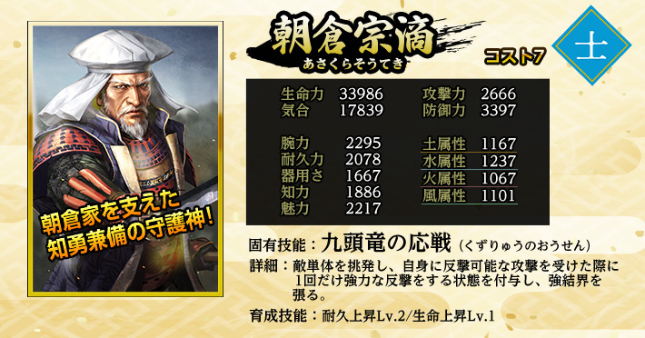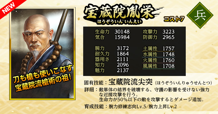 使用することで「英傑」を仲間にできる。 《英傑の招喚鈴・ね》の英傑に加え、《上泉信綱》《宝蔵院胤栄》の両英傑が登場する。 入手済みの英傑が重複した場合、入手の代わりに限界突破が発生します。限界突破は最大4回で、以降は等級に応じた「英傑の零力」が手に入ります。 |