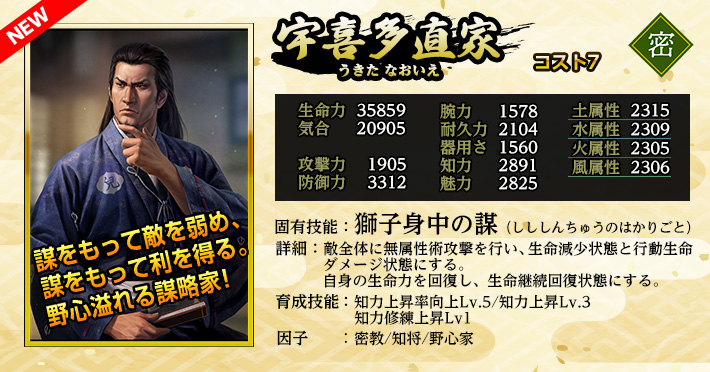 | 知力上昇率向上Lv.1 | 家臣闘練で修練内容に配置された時に、知力の上昇割合を上げる。 | |||||