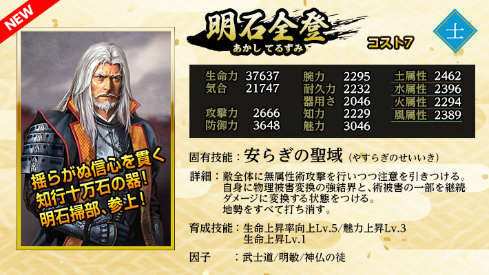 《英傑の招喚鈴・お》の英傑に加え、英傑《明石全登》《義姫》《竹中重門》が登場する。