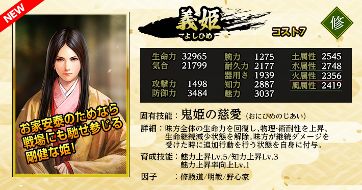 • ※「鬼姫の知勇」の「継続ダメージ」の上昇量には上限が設定されています。