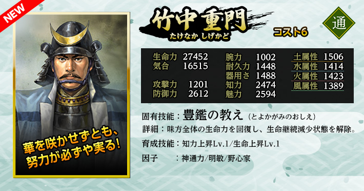 期間中にログインして、新英傑「竹中重門」を仲間にしよう!