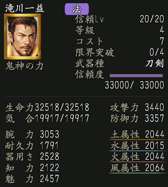 | 腕力上昇率向上Lv.3 | 家臣闘練で修練内容に配置された時に、腕力の上昇割合を上げる。 | |||||