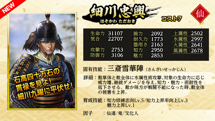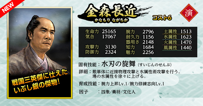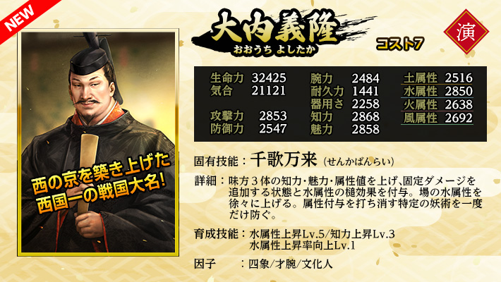 | 魅力上昇率向上Lv.3 | 家臣闘練で修練内容に配置された時に、魅力の上昇割合を上げる。 | |||||