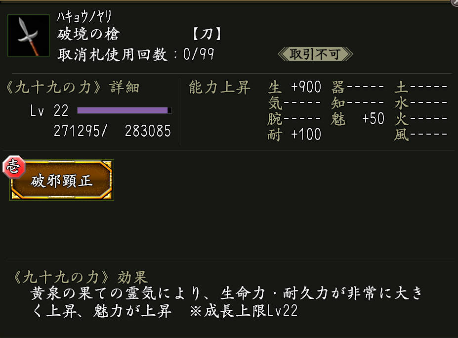 | 破軍 | 《邪術機関》 7個 | 英傑探訪の依頼で指名した時、達成率が高くなります。 |