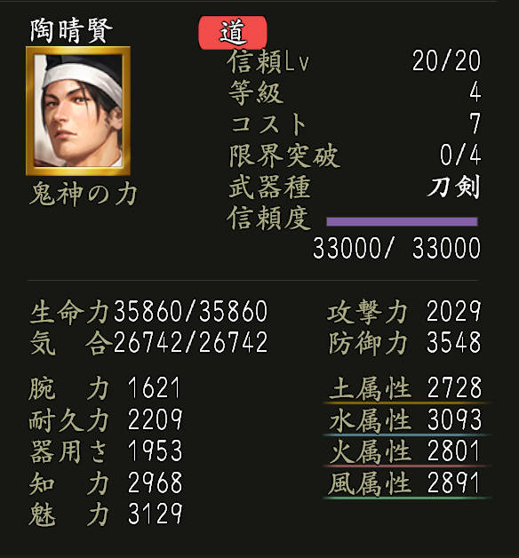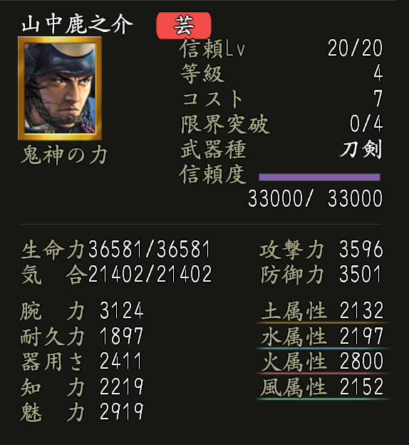 侍 | 武芸 | 武芸 | 勇将 | 根性 | 猛将 |