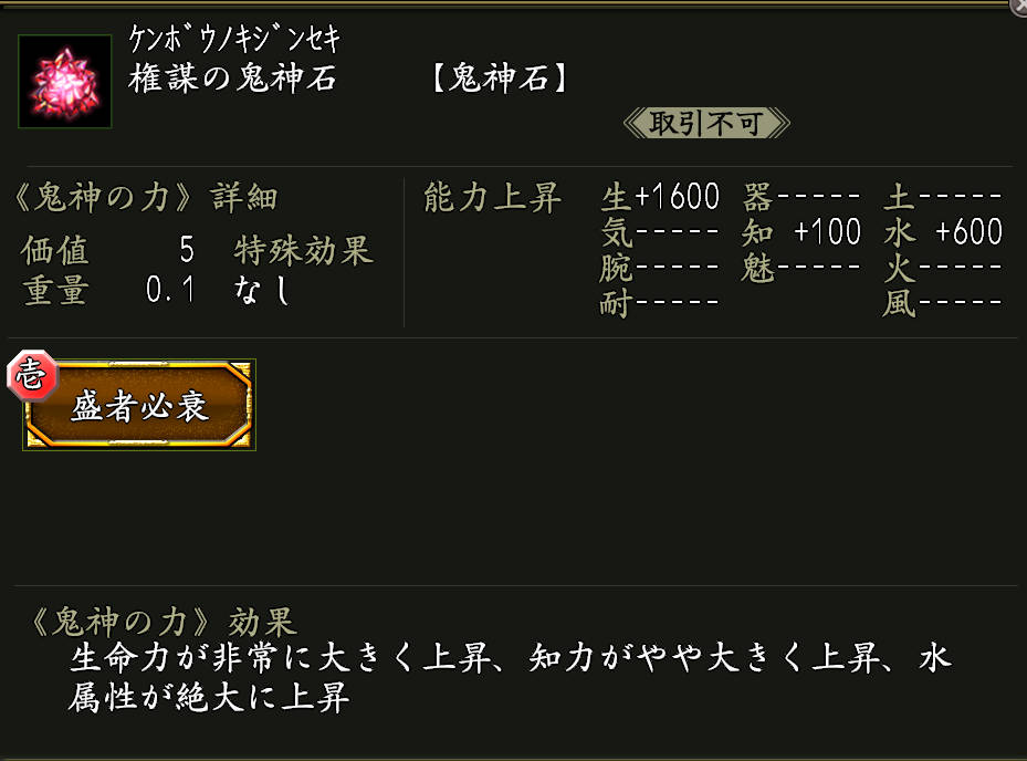 効果:鬼神の力「壮健剛毅」が付いた鬼神石。