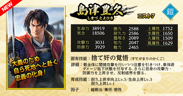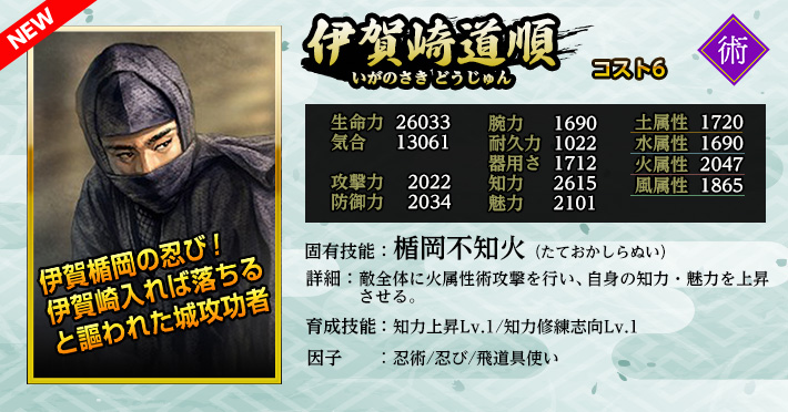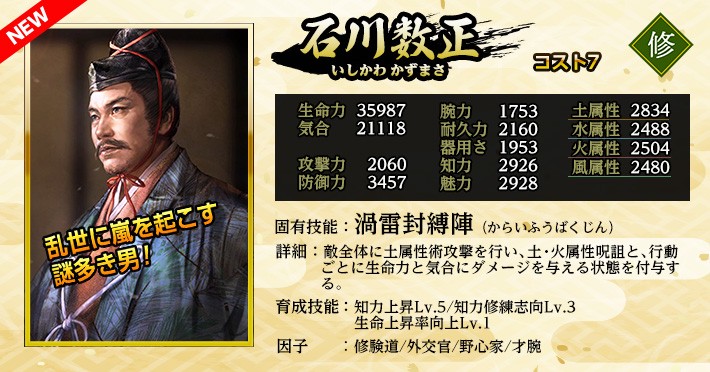 | 魅力修練上昇Lv.1 | 家臣闘練で魅力関連の修練に配置された時に、魅力の上昇量を上げる。 | ||||||