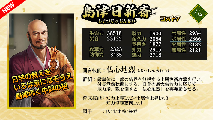敵単体に風属性術攻撃を行い、味方全体の知力・魅力を上昇させる。自陣営の士気玉を1つ追加。 | ||||||