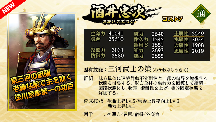 | 水属性上昇Lv.1 | 家臣闘練で修練内容に配置された時に、水属性の上昇量を上げる。 | ||||||