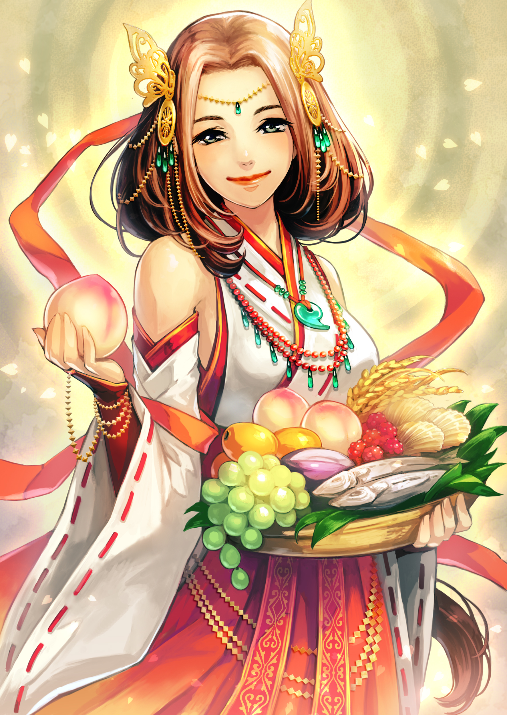 生命力を司る、五穀と養蚕(ヨウサン)の神。伊邪那美(イザナミ)の子とも、迦具土(カグツチ)の子とも伝わる。