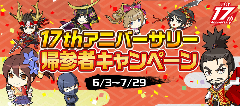 “信On”を休止中のお友達の復帰を応援してみませんか。帰参者キャンペーン実施期間中に、現在プレイ中の方々(帰参対象でない方々)は、NPC《復帰応援奉行》より“お友達復帰応援番号”を受け取れます。この番号を帰参者に伝え、ゲーム内で入力してもらうと、お互いにうれしいアイテムを獲得できます。