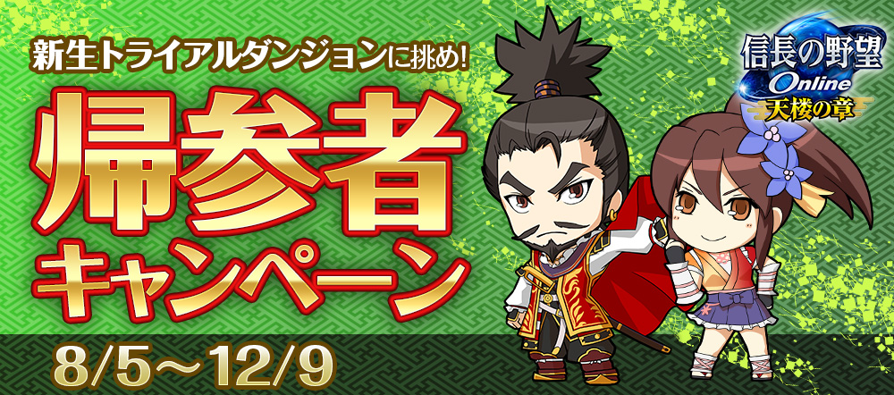 | 特典2 | 帰参者プレゼントに「英傑」「家臣」のアイテムが登場! |