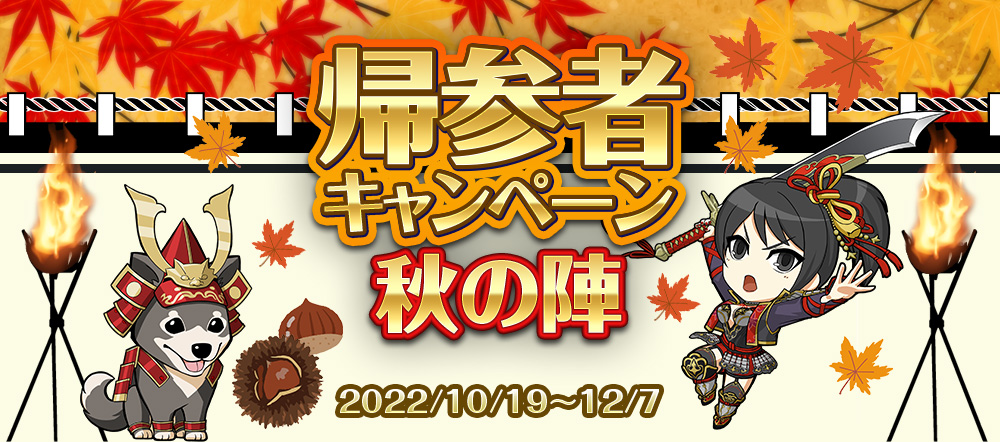 2022年10月19日(水)より「帰参者キャンペーン 秋の陣」を開催いたします。