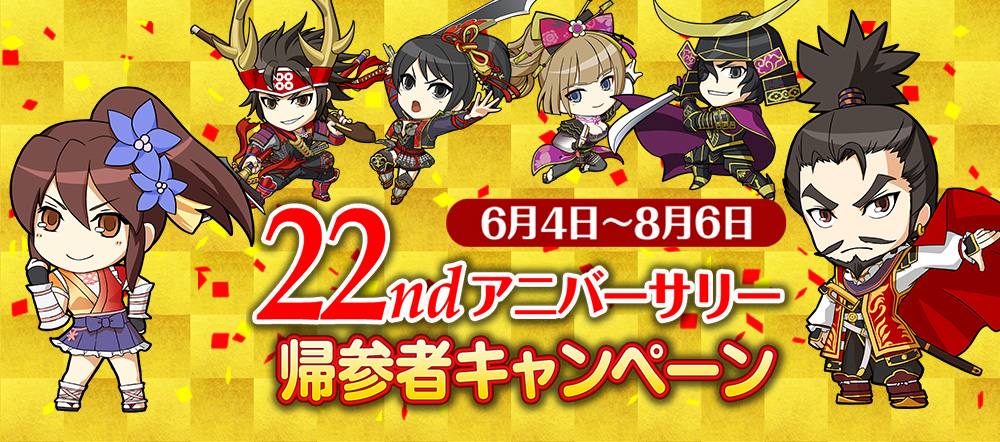 | 特典2 | 帰参者全員に「英傑」「家臣」のアイテムをプレゼント! |