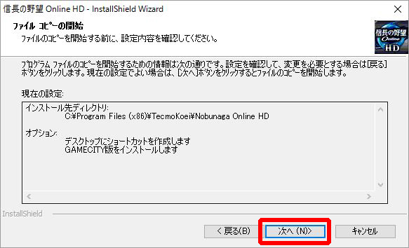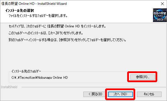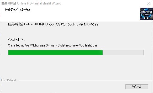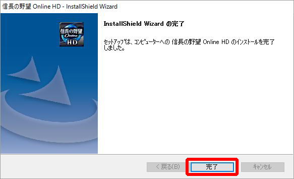 まず実行中のインストーラーを終了し、「信長の野望 Online HD」をアンインストールしてください。