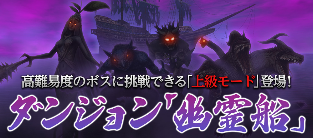ダンジョン「幽霊船」は、日本各地に現れた南蛮の幽霊船を、不思議な「羅針盤」に導かれながら攻略するダンジョンです。幽霊船にはさまざまな種類があり、戦国の世には珍しい西洋風のモンスターや貴重な財宝が冒険者たちを待ち受ける、非常にやり応えあるダンジョンとなっています。