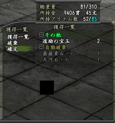 また、設定の確認や変更は[コマンドメニュー1]-[アイテム]-[自動破棄]-[確認・変更]で可能です。
