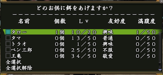 3.「お供」に食事系アイテムを与える際の操作性の改善と「らくらくお供」オプションサービス