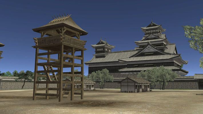 「熊本城」は「武者返し」の名で知られる高い石垣に囲まれ、迷路のような入り組んだ構造になっており、外敵を排除する巡回兵や守備隊、敵の侵入を防ぐ櫓(やぐら)が配置されています。