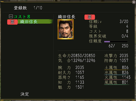 獲得した信頼度を英傑に割り振ることで、「信頼Lv」が上昇し、新たな技能を使用できたり、能力値のパラメータが上昇したりします。