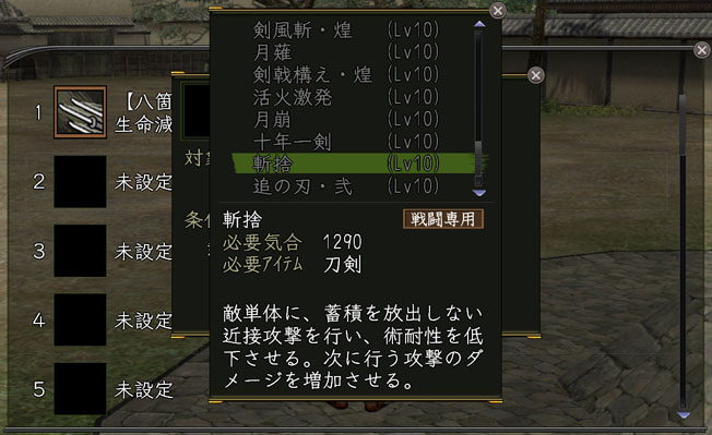 英傑には、家臣のような「行動設定」で具体的な行動内容の指示を出すことができますが、仲間になった英傑も最初はプレイヤーのことをあまり信頼せず、戦闘であまり多くの技能を設定できません。