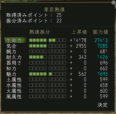 家臣のレベル上限が65から75まで上昇し、『勇士の章』までの技能が使用可能に。