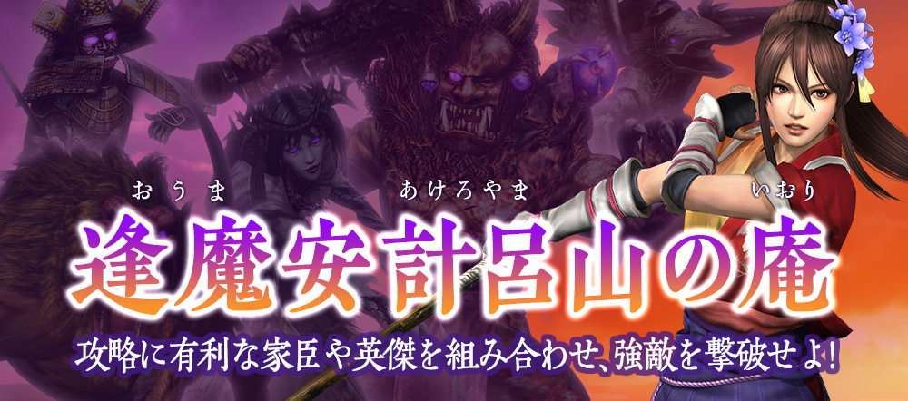 安土の《道場娘まり》または、南門付近に居る《安土町方衆》メニューの「《逢魔依頼》を見る」から徒党員1~7人で挑戦いただけます。