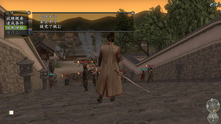 いずれかの勢力に仕官後、右京の神社にいる《謎の女》に話しかけ、「天下布武異録・信長編」の物語を進めることで、「《厳島》未達成の場合」と同様の手順で攻城戦《安土城》の依頼を受けられるようになります。