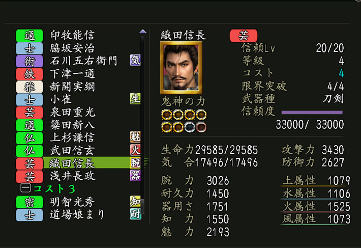 ※英傑「織田信長」の能力値はこちら。