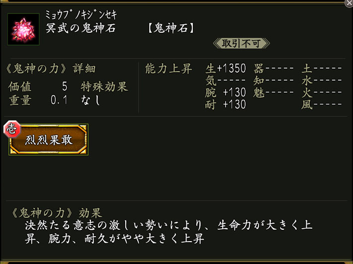 効果:鬼神の力「烈烈果敢(れつれつかかん)」が付いた鬼神石。