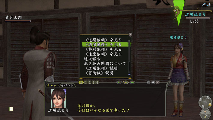 《安土》のもののふ道場にいる《道場娘まり》に話しかけ、道場依頼を受けましょう。