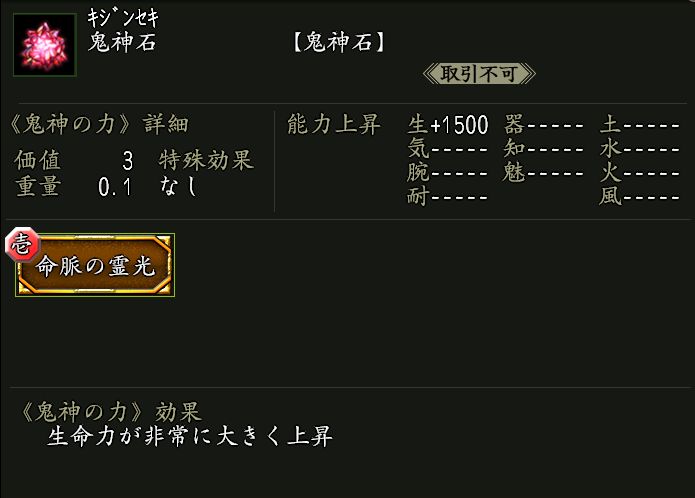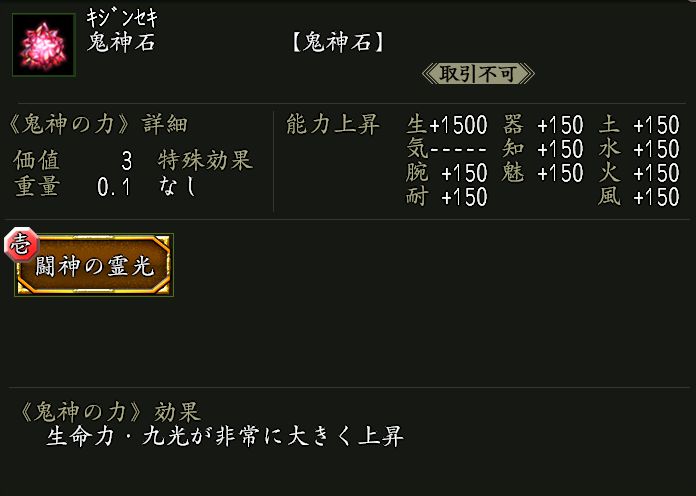 使用すると鬼神の力が宿る鬼神石を生成する。