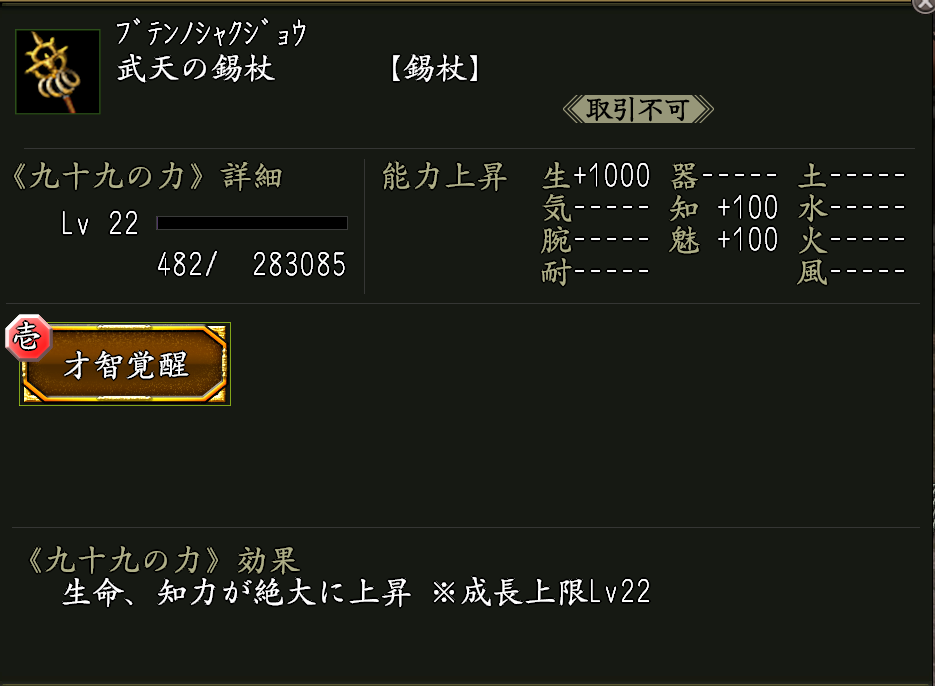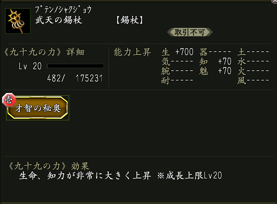 ※神将評勲の交換品に《才智の秘奥》が宿った九十九武器《武天の錫杖》があります。
