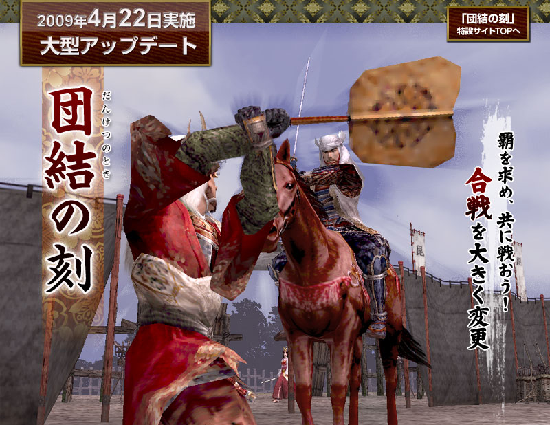 | ● | 「大決戦」の勝敗条件を変更します。 大名が落ちない場合、戦果差1000以上で決着が付くようになります。 |