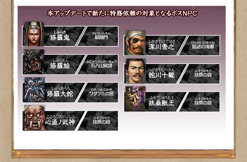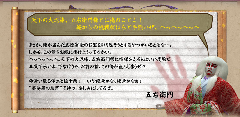 本アップデートのメインテーマ「五右衛門からの挑戦状」は、天下を騒がす大泥棒“五右衛門”からの挑戦を受け、彼の根城である“婆娑羅の巣窟”に挑むことになります。