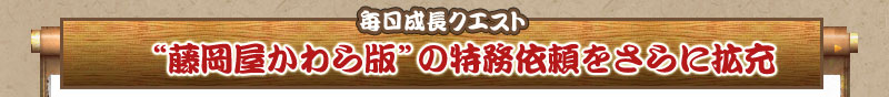 毎日成長クエスト“藤岡屋かわら版”の特務依頼に、“上級者クエスト”剣聖信綱編のボスNPC討伐を追加します。