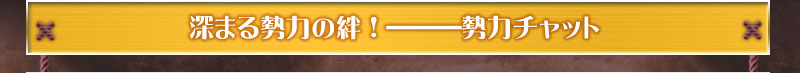 勢力内のコミュニケーションに役立つ“勢力チャット”を導入します。評定や軍議の際はもちろんのこと、イベントの打ち合わせや、普段からの交流など、自由にご利用ください。