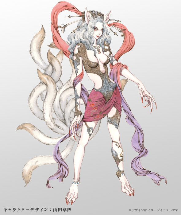 腰からは9本の尾が生えており、これらを武器のように自在に操ることができる。
